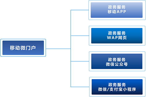 移动微门户是政务服务在移动智能终端上的应用,通过手机和平板电脑等新载体为公众提供更快的服务,以拓展政府服务渠道,使更多的人可以随时、随地登录互联网获取网络信息和服务,主要包括政务服务移动APP、WAP网页、微信公众号、微信/支付宝小程序等服务渠道。