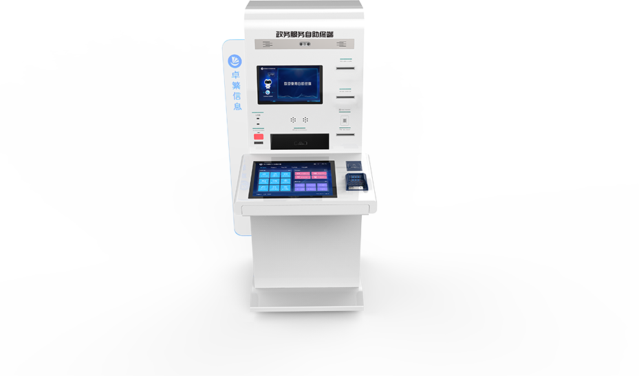 在国家政策指引下,为了破解群众办事来回跑、办事地点远、办事地点分散等痛点,降低群众办事难度,缩短办事周期,实现“数据多跑路、群众少跑腿”,卓繁信息基于人脸识别、语音交互等人工智能、大数据等技术自主研发了政务服务自助终端。该终端是放置在社区(村)便民服务站、商场车站等人流密集场所、大型工厂与企事业单位等地点,基于人工智能技术打造的一款服务多元、操作智能、高度集成的新型终端设备,改变了传统自助服务终端设备“大、重、笨”等缺陷,充分利用现代化集成技术和人体工程学的设计原理,将高拍仪、打印机、触摸显示器、身份证读卡器、银联卡读卡机、凭条打印机、条码扫描器等近20项专用设备进行了精细化集成和一体化整合,通过人机语音对话与人机触摸操作的方式为广大市民提供政务服务与便民服务业务的办理。