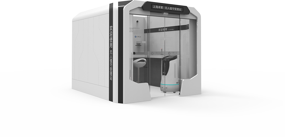 无人值守受理站采用半封闭区域设计,以AI为核心将多项专用设备进行精细化集成和一体化整合,全程采用语音和动画结合的方式引导用户自助办理政务服务业务,解决自助办事过程中的“实人身份认证”、“材料原件收取”等问题,真正实现政务服务业务自助办、随时办。