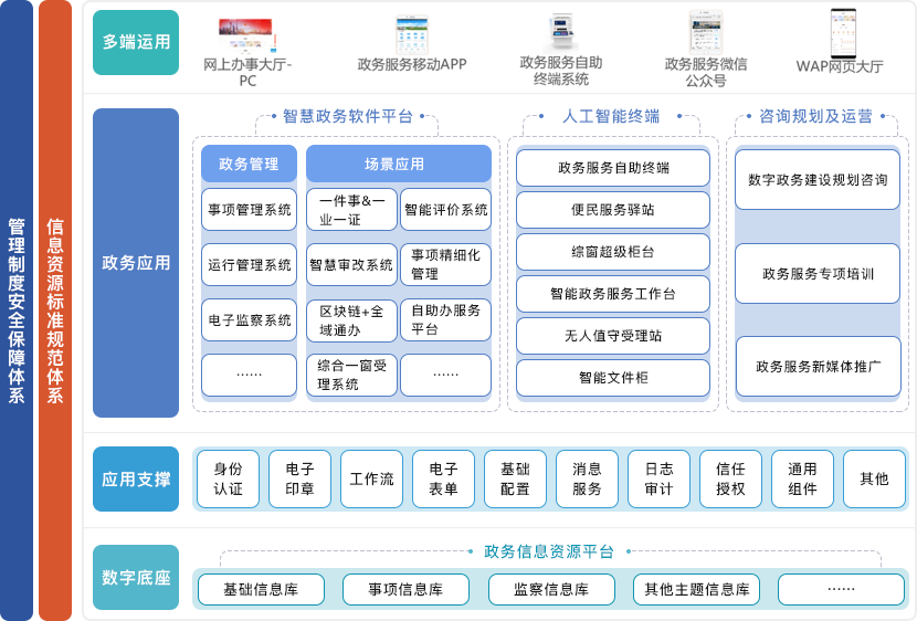 卓繁信息一网通办系列解决方案以现有政务基础资源为基础,推动“一网通办”改革在政务服务领域深化拓展,逐步实现“一网通办”覆盖政务及公共服务领域,“一件事”基本覆盖高频事项。进一步提升平台能力,全面深化数据治理,持续改善用户体验。提升线上线下服务能级,实现政务服务的标准化、精准化、便捷化、平台化、协同化,政务服务流程显著优化,服务形式更加多元,服务渠道更为畅通,群众办事满意度显著提升。