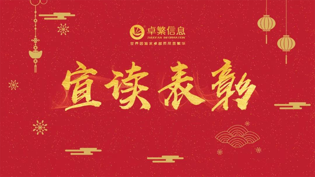 青鸾传佳音,卓繁信息收到了来自全国各地客户的表扬信三十余封。《宣读表彰》环节,公司对来信客户表以谢意,并对过去一年里,在上海市、安徽省、湖北省、内蒙古自治区、西藏自治区、海南省、江苏省、浙江省、青海省、四川省、河南省、福建省等地各个项目上勤勉工作的卓繁人进行表彰,感谢他们以专业高效的业务能力和认真负责的工作态度为卓繁信息赢得今天的赞誉。