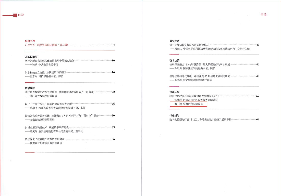 近日,由卓繁研究院研究员刘颖与内蒙古自治区政务服务局副局长张文辉联合撰写的《我国智慧政务与营商环境协调发展的关系研究》一文,正式刊发于《党政信息化参考》2021年第2期!