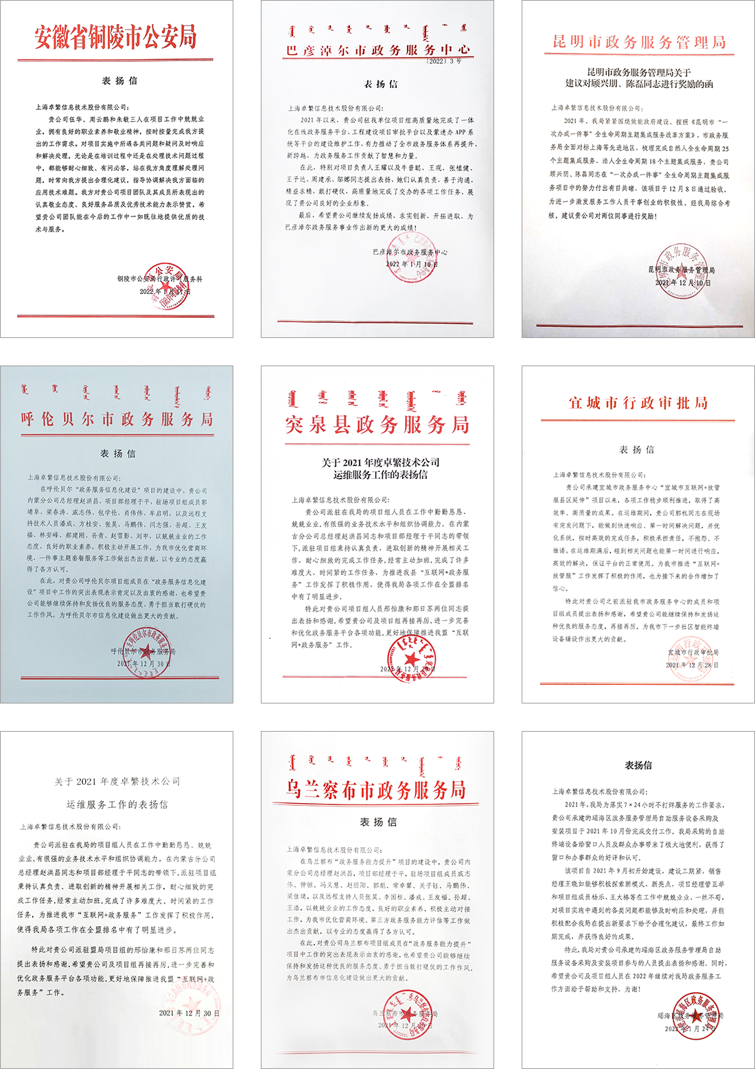 众多的感谢信,表达了客户对卓繁人的认可和赞赏,称赞他们的服务热情而规范、专业而高效;表达了对卓繁信息精神的钦佩,将认真负责、创新进取、敢于担当融注于每