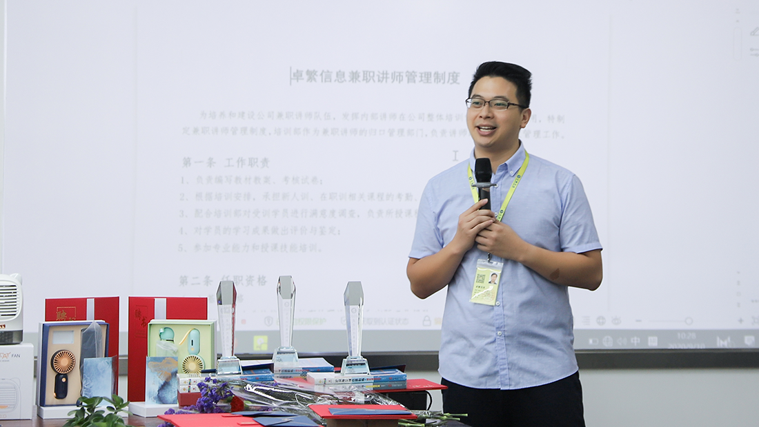 李飞老师作为讲师代表上台发言,在表达了对学员们认可及厚爱的感激外,也对未来工作规划做了简单阐述。他表示,卓繁信息的培训制度已渐趋完善,未来,大家的工作