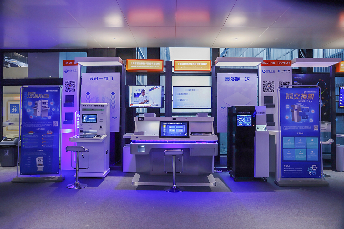在此次博览会上, 卓繁信息携人工智能先进技术及产品参展,主要包括:自助办理工作台、智慧城市为民服务终端、智能化数据交换机。